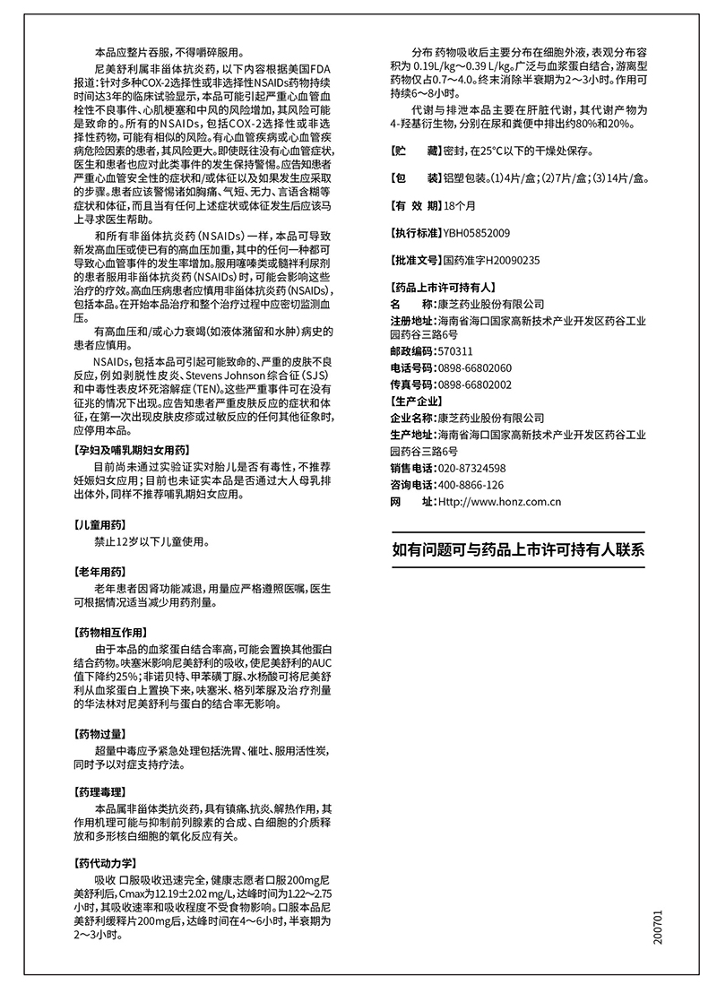 尼美舒利緩釋片