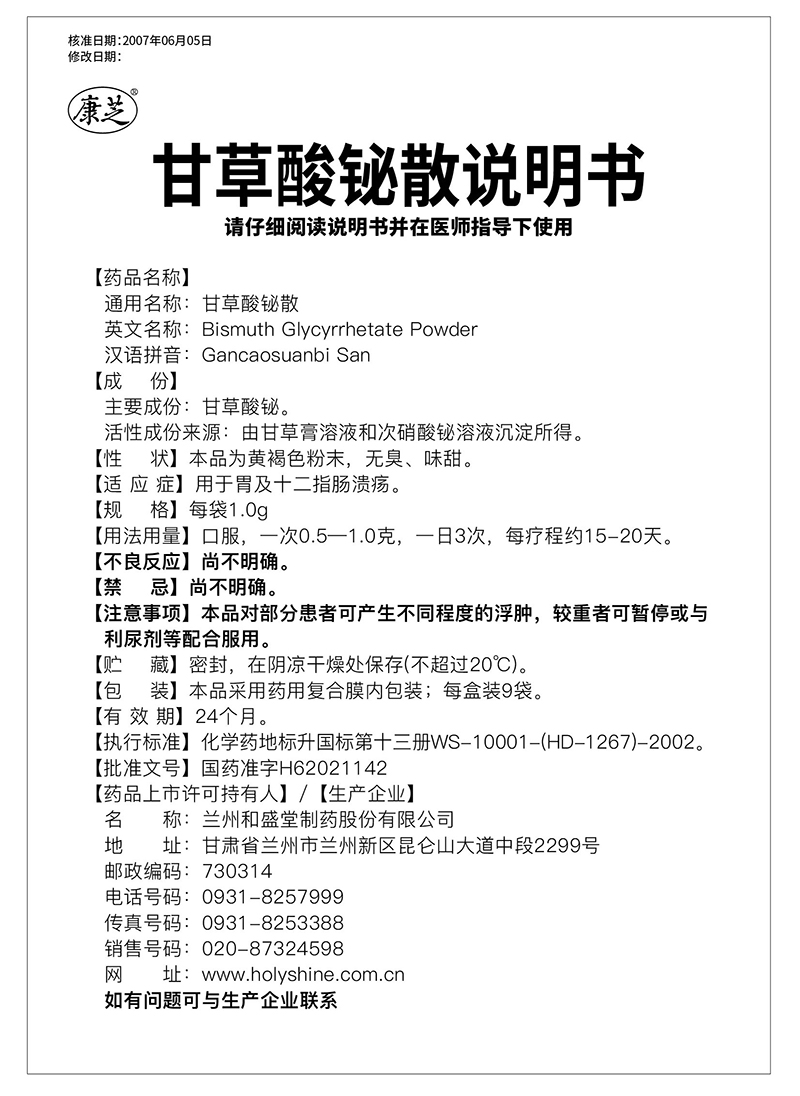 1.1g*9袋; 2.用于胃及十二指腸潰瘍。