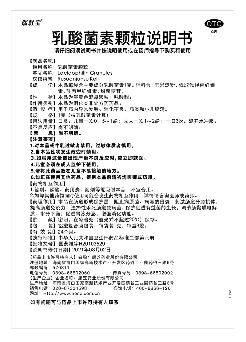 1.1g*8袋; 2.用于腸內(nèi)異常發(fā)酵、消化不良、腸炎和小兒腹瀉。