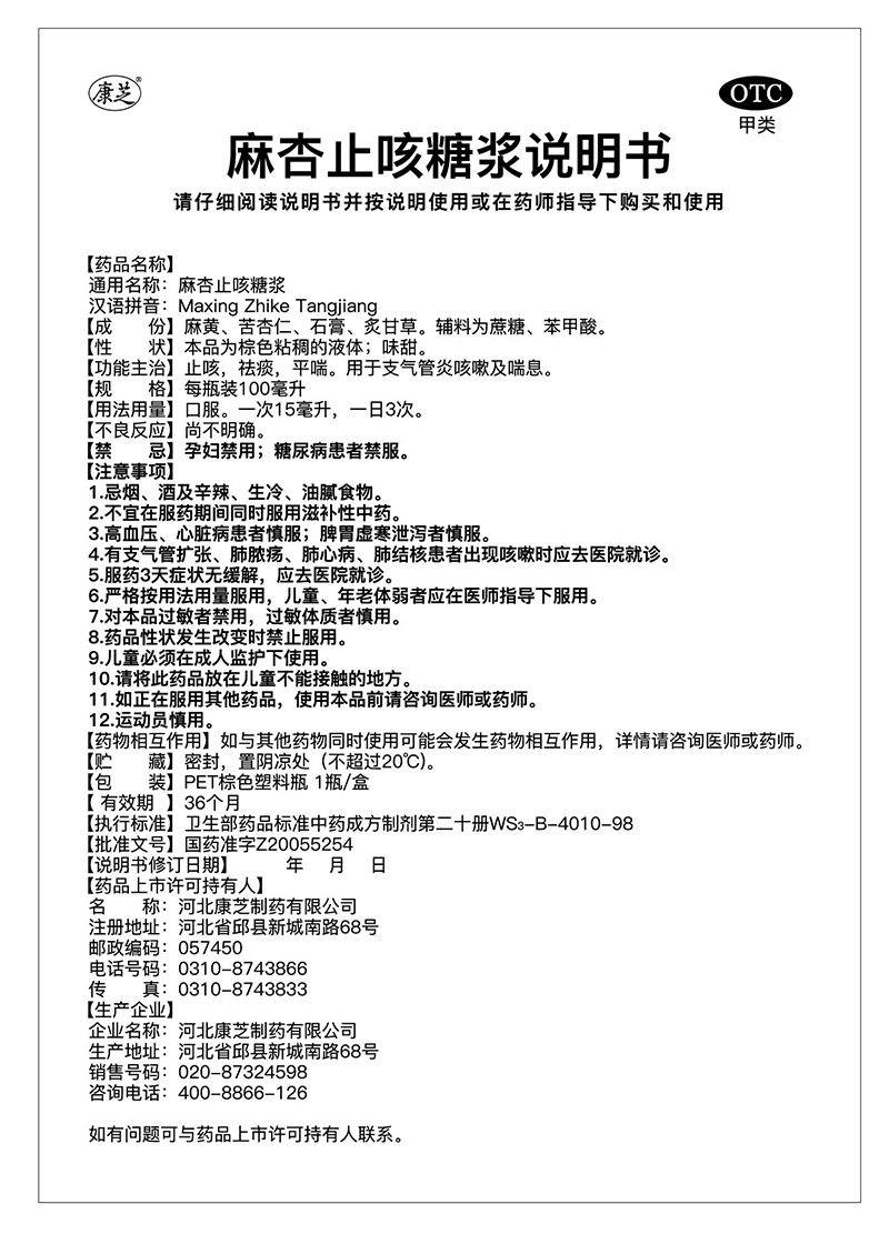 1.100ml/瓶; 2.用于支氣管炎咳嗽及喘息。