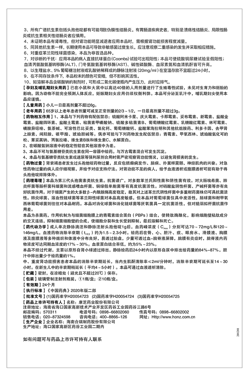 1.1.0g*10瓶; 2.國家基藥,醫保目錄; 3.第三代頭孢菌素。