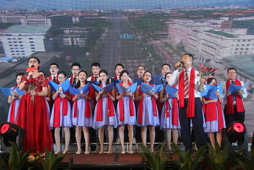 2017員工年會,洪江游董事長領銜演唱《國家》