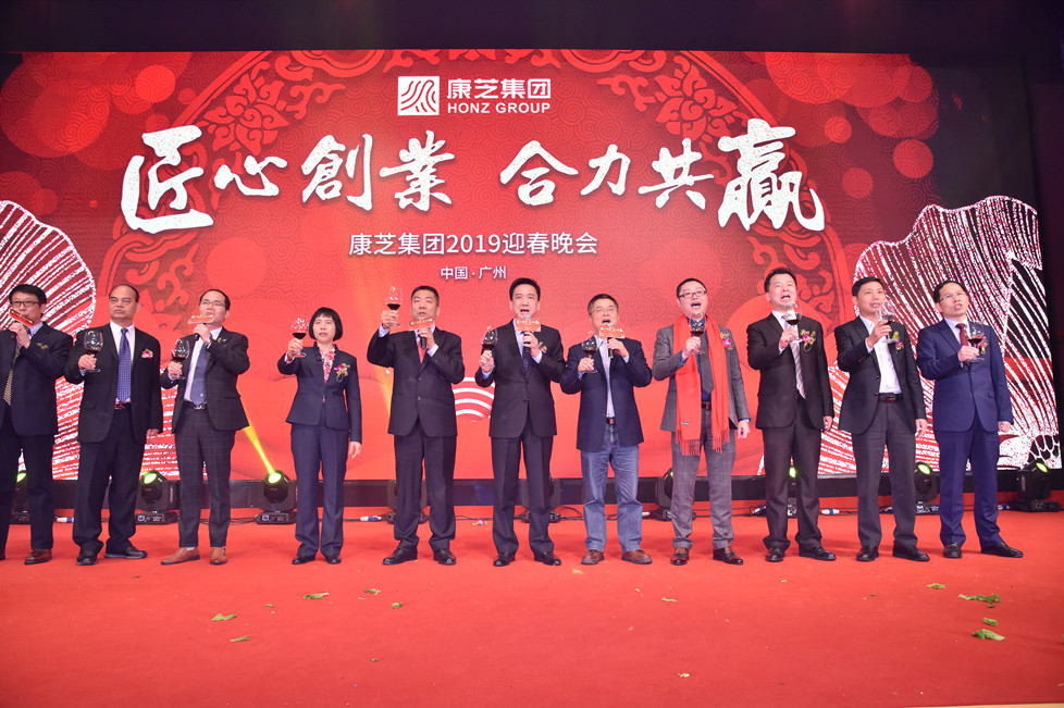 2019年年會洪江游董事長率高管班子登臺祝酒